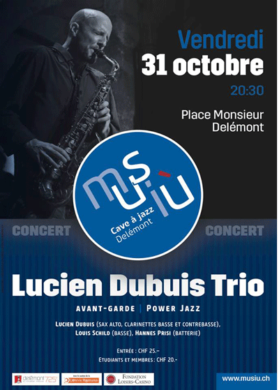 L’exceptionnel saxophoniste et clarinettiste Lucien Dubuis s’arrêtera à la cave à jazz Musiù de Delémont, vendredi 31 octobre à 20h30. Lors de ce concert unique, il jouera pour la première fois avec son nouveau trio composé des jeunes et talentueux musiciens Louis Schild à la basse et Hannes Prisi à la batterie.