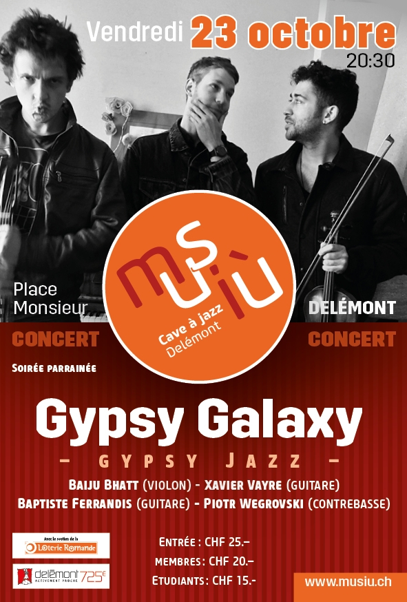 Le vendredi 23 octobre à 20h30, la cave à jazz Musiù aura le privilège d’accueillir Gypsy Galaxy, une formation internationale de jeunes talents à l’expérience déjà impressionnante.