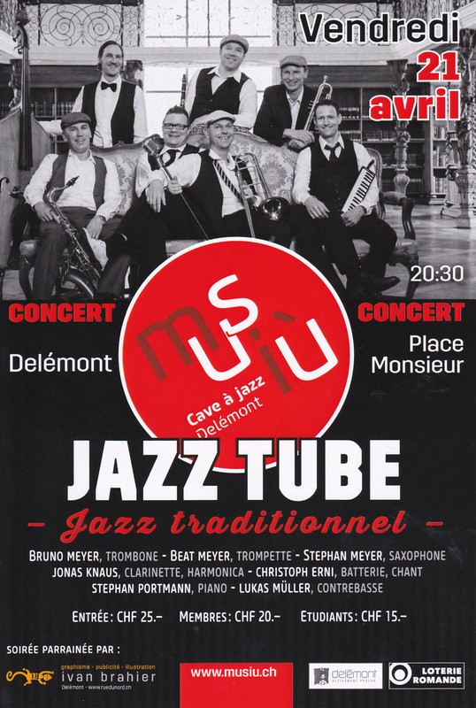 Pour le dernier concert de jazz traditionnel de la saison avant la pause estivale, nous accueillons les sept musiciens du Jazz Tube Ruswil (Lucerne) .